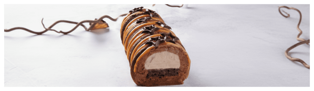 bûche floquée avec le décor caramel Toffee. Apportez la touche finale avec les étoiles Galaxy en chocolat Dobla.